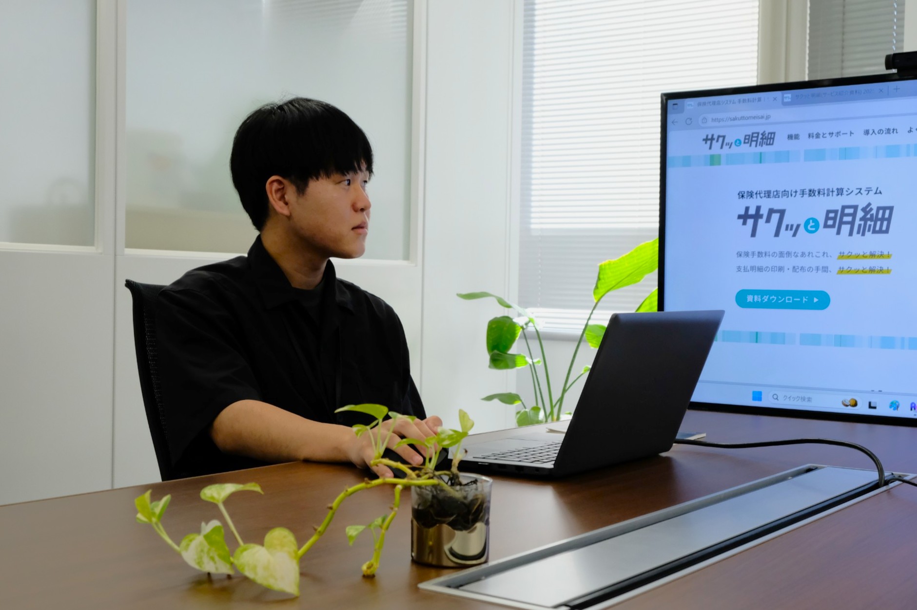 保険代理店向けの自社開発システム『サクッと明細』のシステム開発チームに配属され、主にプログラミング保守作業を担当しています。